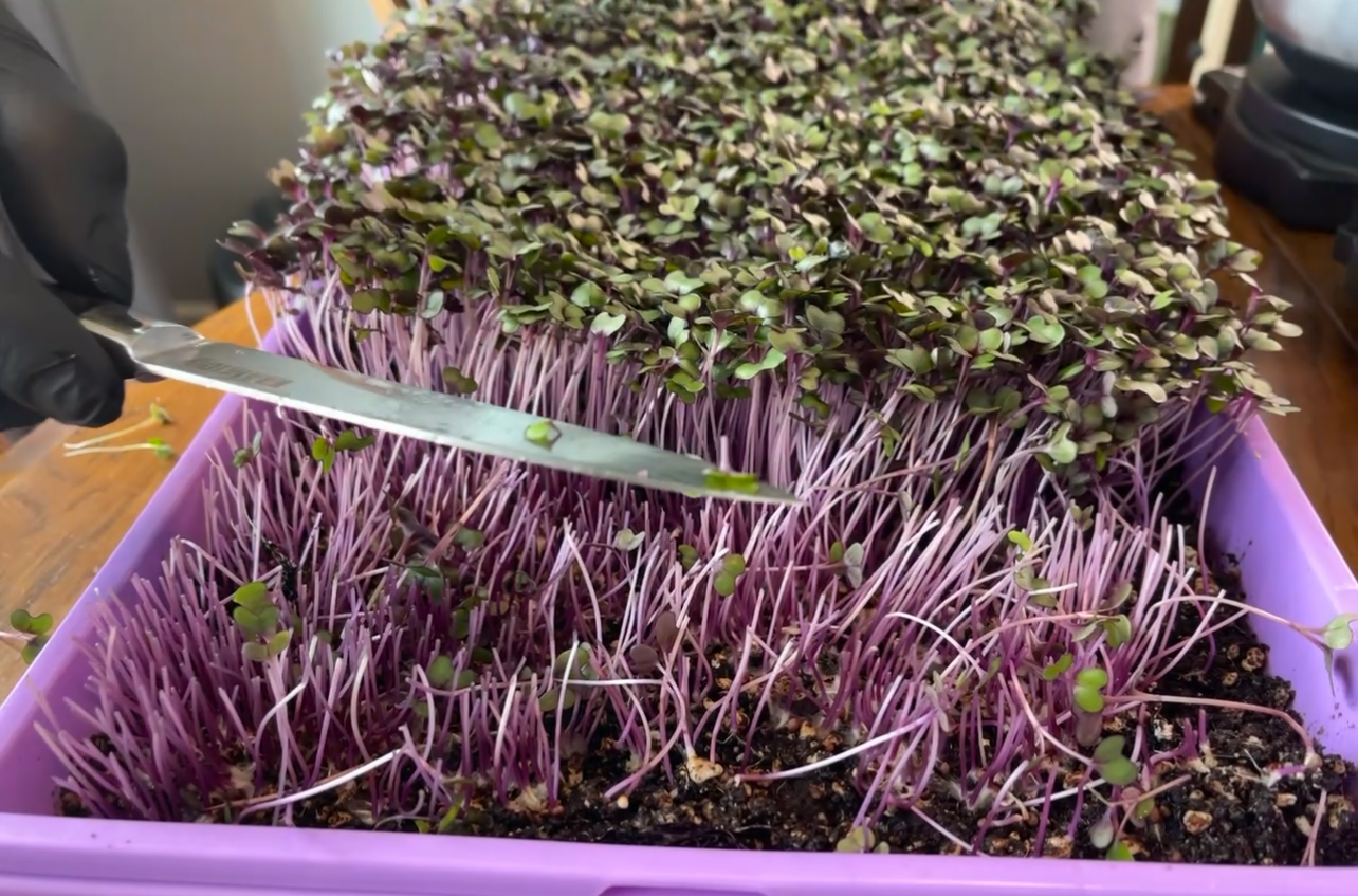 Between 10-14 days after each tray is started, the baby plants are ready to harvest. They are packed with more nutrients, minerals and antioxidants then the vegetable harvested from the plant.